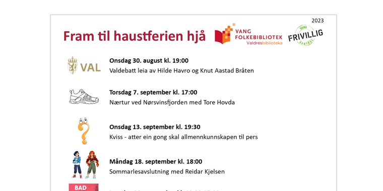 Hald deg oppdatert på smått og stort: facebook.com/vang.folkebibliotek.